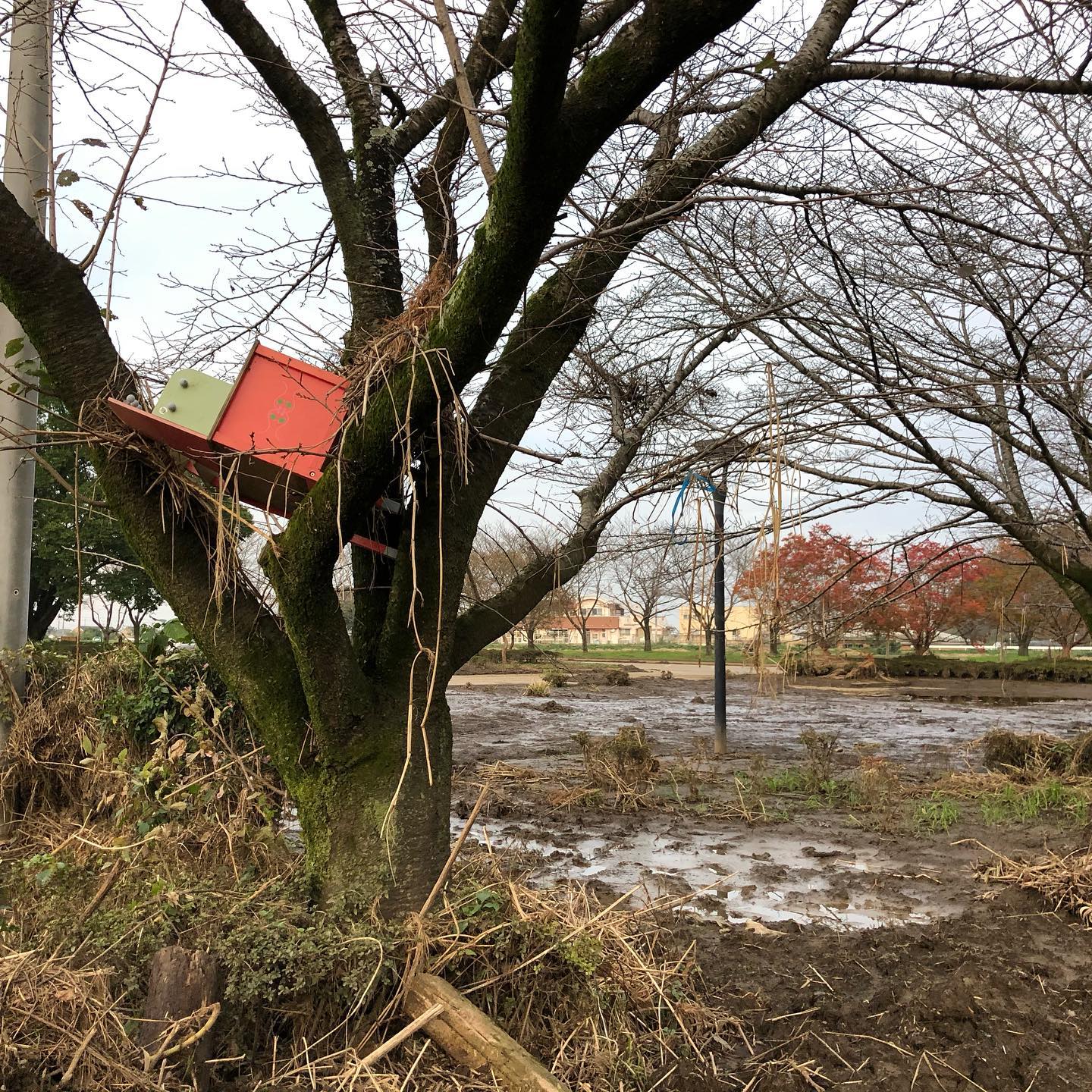 The water rose to nearly 2 meters that even pulled the child’s toy up the tree.